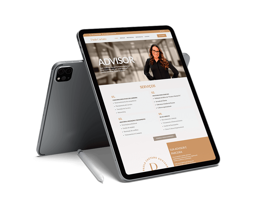 Criamos o site da Paula Caetano, especialista em liderança, marketing e inovação com vasta experiência em grandes multinacionais. O site destaca seus serviços de consultoria estratégica e de negócios, assessoria na contratação de executivos, planejamento de marketing e trade marketing, além de mentoria e recolocação de executivos. Com um design profissional e conteúdo informativo, a plataforma reflete a expertise de Paula Caetano e facilita o contato com potenciais clientes.