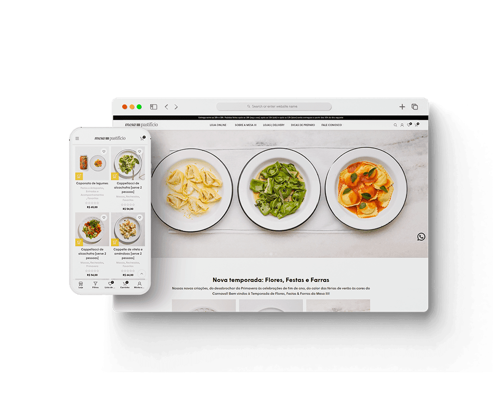 Criação da loja virtual da Mesa III, especializada em massas artesanais, integrando design atraente e funcionalidades avançadas. A plataforma oferece uma navegação intuitiva, permitindo aos clientes explorar facilmente categorias como massas frescas, molhos e sobremesas. Essa solução digital aprimorou a presença online da Mesa III, facilitando o acesso dos consumidores aos seus produtos de alta qualidade.