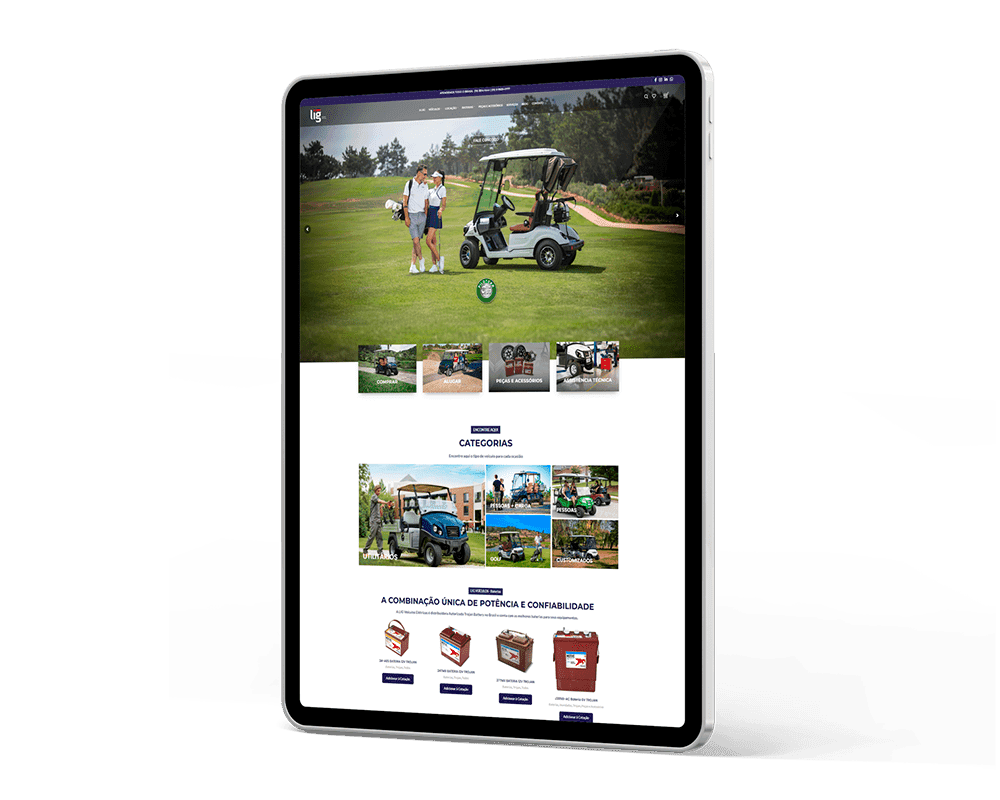 Desenvolvemos loja virtual da LIG Veículos Elétricos, especializada na venda, locação e manutenção de veículos elétricos no Brasil. A plataforma destaca a variedade de modelos de veículos elétricos, como os da Pilot Car e Club Car, reconhecidos pela inovação e sustentabilidade.