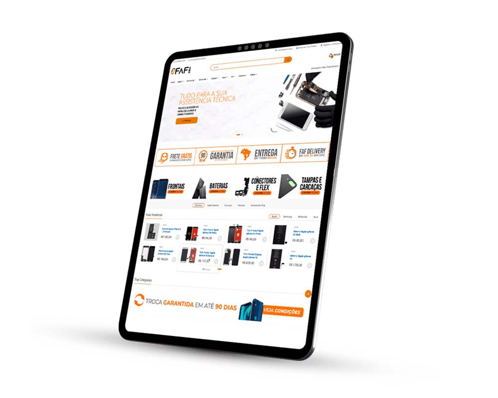 A Valenti Hub desenvolveu a loja virtual da FAF Cell, especializada em assistência técnica e venda de peças e acessórios para celulares e computadores. Com um design intuitivo e funcional, o site facilita a navegação dos clientes, permitindo-lhes encontrar rapidamente os produtos necessários para a manutenção de seus dispositivos. Essa solução digital aprimorou a presença online da FAF Cell, ampliando seu alcance e facilitando o acesso dos consumidores a produtos e serviços de alta qualidade. contribuindo para o aumento das vendas online e a satisfação dos clientes.