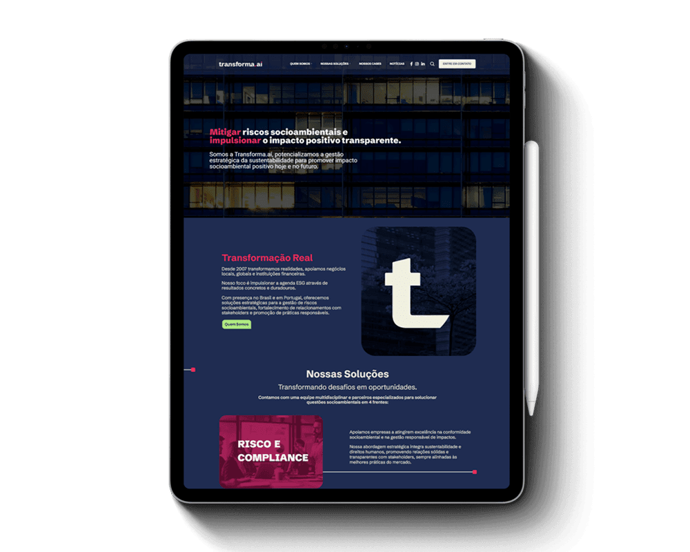 Desenvolvemos o site da Transforma.aí, uma consultoria especializada em comunicação estratégica e ESG. O design moderno e funcional facilita o acesso aos cases e notícias, proporcionando uma experiência personalizada para empresas que buscam melhorar sua comunicação e alcançar mais resultados.